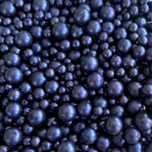 Směs kulatých voskových perlí různých velikostí.