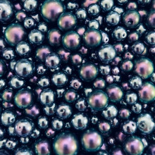 Směs kulatých voskových perlí různých velikostí, mix šedofialového vosku a fialovo-duhového.