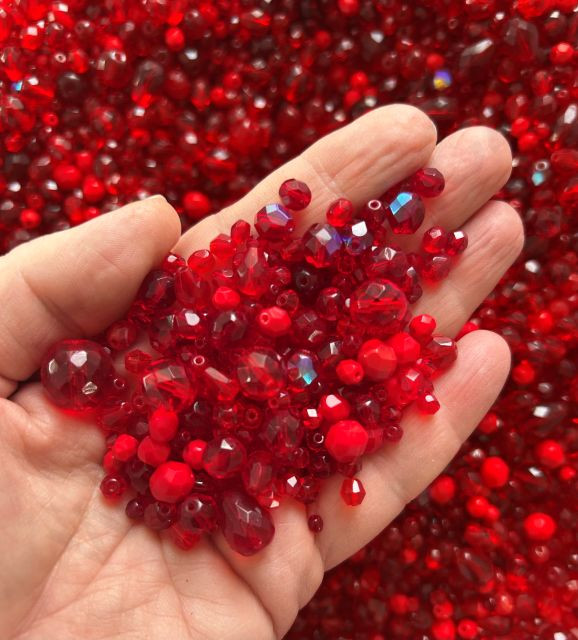 Mix skleněných broušených perlí tzv. ohňovek.